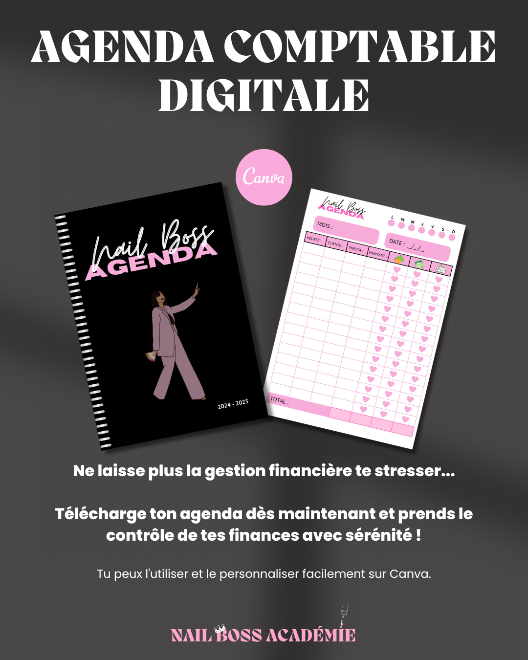 Simplifie la gestion de tes finances avec ce Template d'Agenda Comptable Nail Boss ! Conçu spécialement pour les Nail Boss, il te permettra de suivre chaque transaction en entrant facilement les détails de tes revenus. Garde une vue d'ensemble sur ta rentabilité et prends des décisions éclairées pour faire grandir ton business. Avec ce fichier, tu es en route vers une gestion financière efficace et organisée !